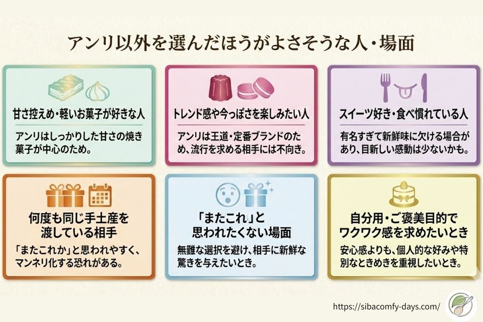 では、アンリ・シャルパンティエのお菓子を選ばないほうが良いシーンはどのような場面でしょうか。