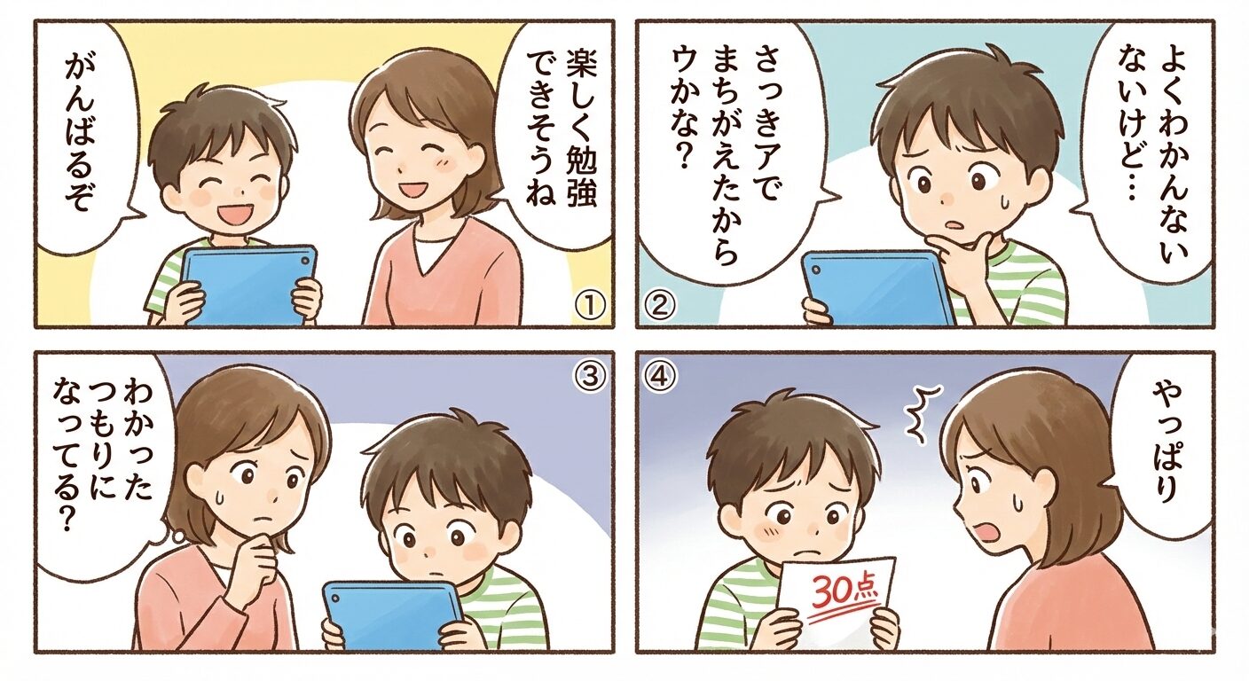 | 適当にこなしている | ・親が見て、子供が「選択肢を適当に選ぶ」「復習しない」 ・学習が身についていないと感じる |